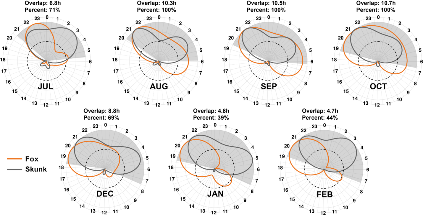 Integrative & Comparative Biology has published a new study demonstrating the extent and seasonality of activity overlap between island foxes and island spotted skunks on Santa Cruz Island. Results show that foxes and skunks overlap in the temporal niche extensively during the summer when average daily temperatures are high, which could mean competition between the species varies on an annual and seasonal basis.